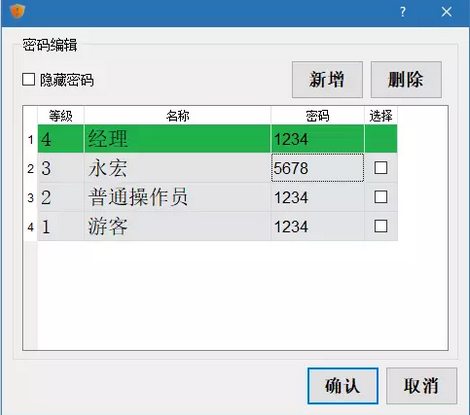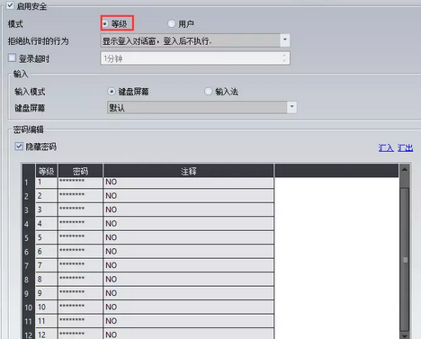 部分企業(yè)的產(chǎn)線人員流動(dòng)性較大,這使得管理層對(duì)于設(shè)備的操作密碼也就是觸摸屏的安全等級(jí)信息、密碼的管理造成了一定程度上的麻煩,每次出現(xiàn)人員變動(dòng)就叫系統(tǒng)廠商來(lái)重新處理程序是比較麻煩的,最方便的方法就是讓產(chǎn)線管理人員自己修改安全等級(jí)信息、密碼,這也就涉及到了C3人機(jī)界面的安全等級(jí)密碼在線更新的功能。深圳捷達(dá)興,永宏一級(jí)代理,