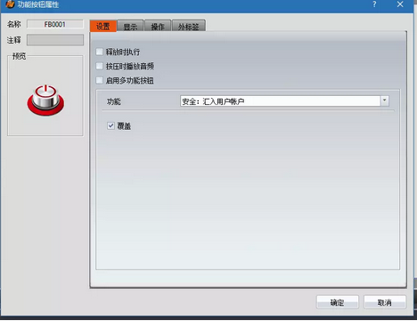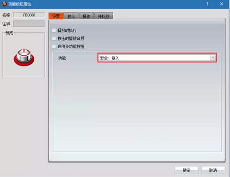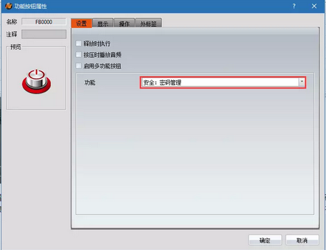 (2)放置兩個(gè)功能按鈕,一個(gè)選擇“安全:登入”,一個(gè)選擇“安全:密碼管理”,如下圖: