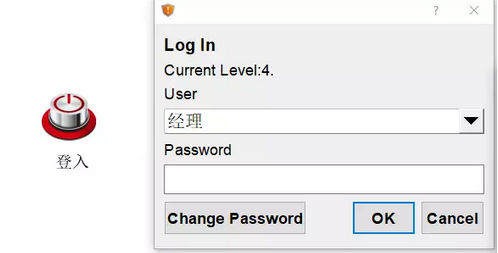 (3)完善其他程序內(nèi)容,然后下載到HMI、運(yùn)行人機(jī)界面,點(diǎn)擊登陸按鈕,登入高級(jí)別的賬戶,如下圖: