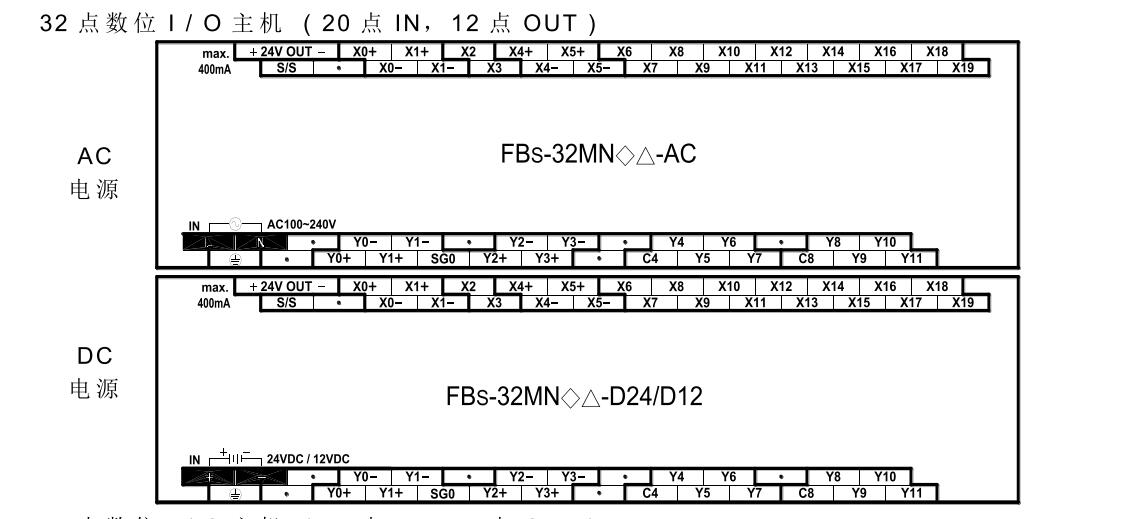 FBS-32MNR2-AC/FBS-32MNT2-AC 永宏PLC IO介紹 20點IN輸入