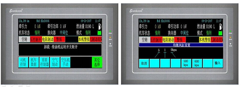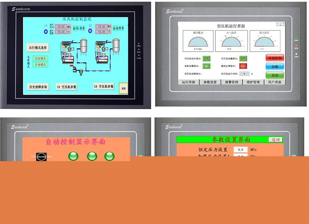 觸摸屏的畫面組態(tài)深圳顯控自動化開發(fā)的SKWorkshop軟件來編輯形成,在其畫面上也有基本相同的參數(shù)信息,報警信號,以及溫度曲線等,也可以從觸摸屏上發(fā)出相應(yīng)的控制命令。觸摸屏部分畫面如圖2所示。