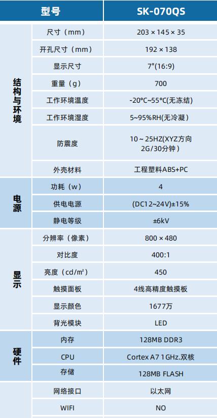 SK-070QS 顯控人機(jī)界面 深圳顯控觸摸屏
