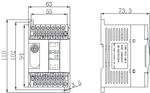 8點NPN型輸入,6點繼電器(R)或晶體管(T)或繼電器晶體管混合(RT)輸出AC220V(E)或DC24V(C)電源