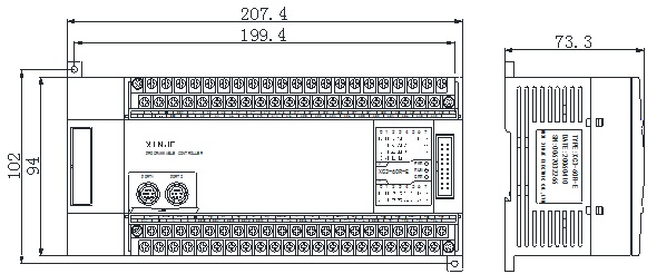 28點NPN型輸入,20點繼電器(R)或晶體管(T)或繼電器晶體管混合(RT)輸出